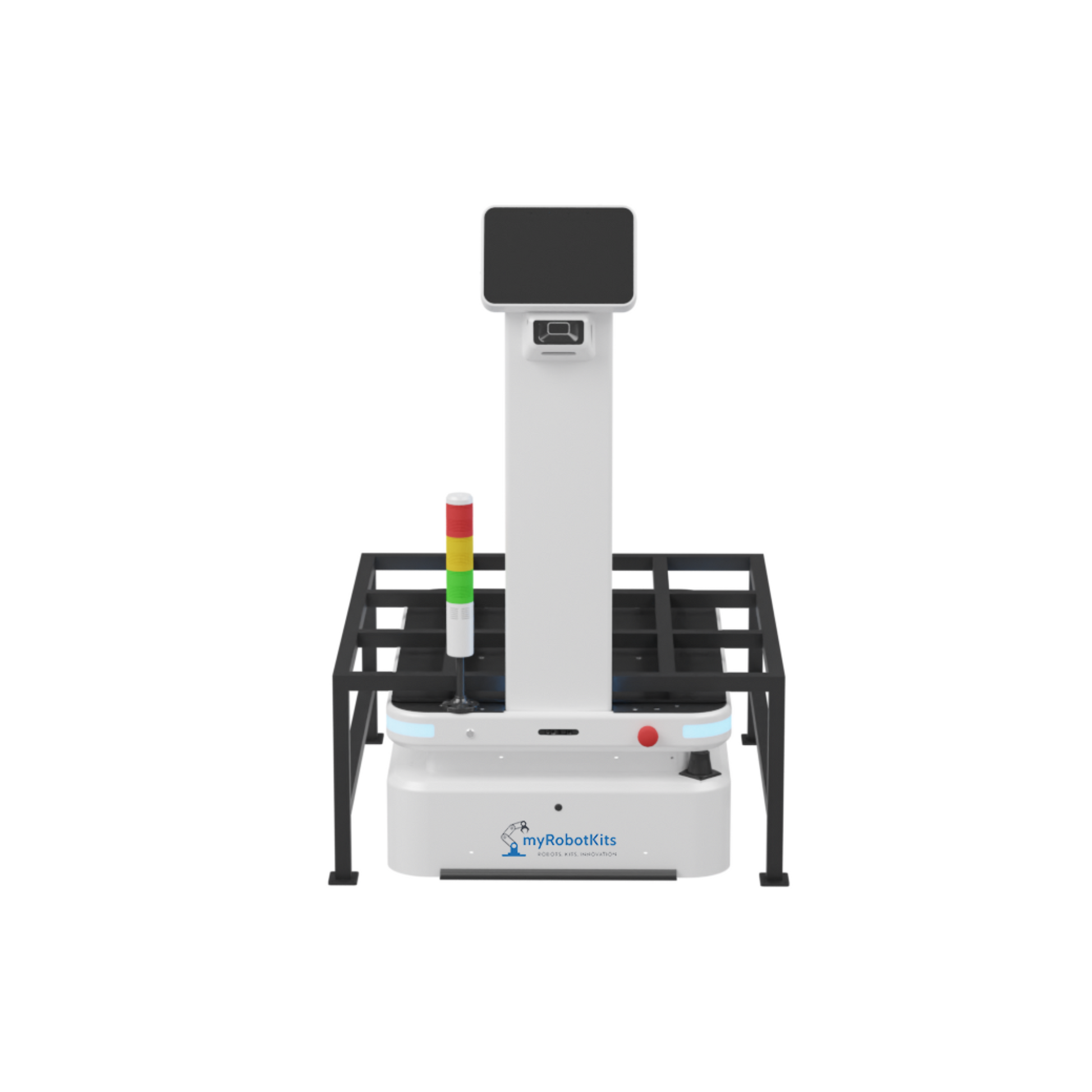 myRobotKits L-600 AMR (Autonomous Mobile Robot) is a robust and versatile robot designed for efficient material handling. It measures 1314 mm in length, 950 mm in width, and 650 mm in height, weighing 180 KG with a durable ABS and metal construction.